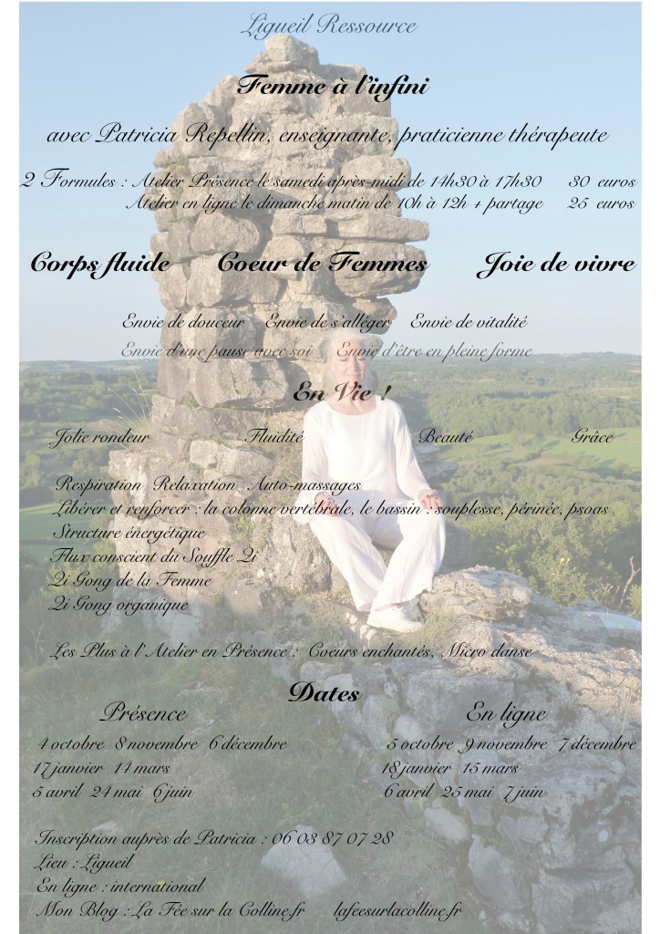En Aveyron, Inscriptions ouvertes à mes stages de l’Été ! La Femme Sacrée du 29 juin au 4 juillet 2026 La Sève et le Souffle du 12 au 18 juillet 2026 Debout et Être du 26 au 31 juillet 2026 … voir dans le menu » séjours 2026 »