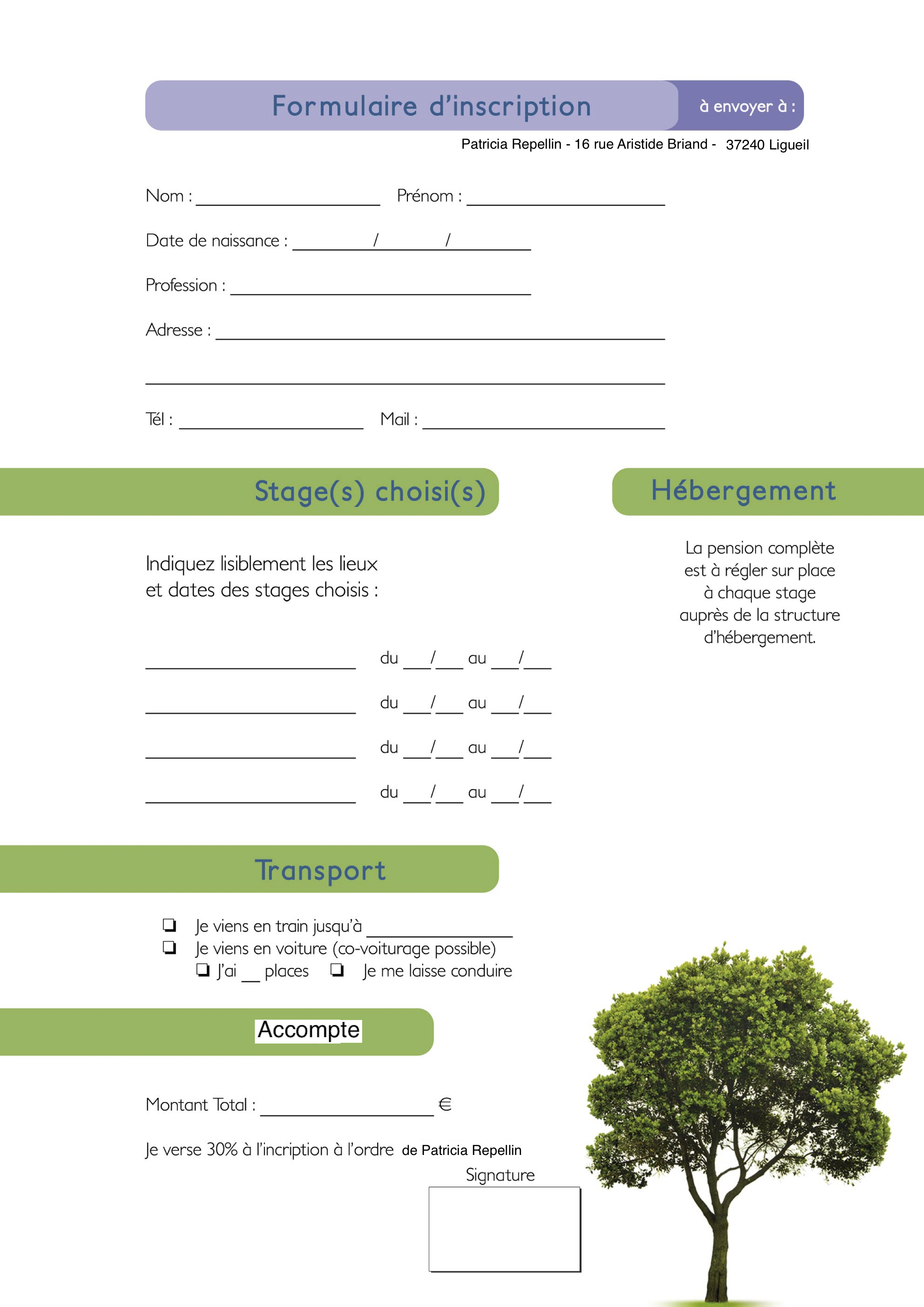 Accueil le dimanche 12 juillet à 16h, fin du stage le samedi 18 juillet à 11h30.